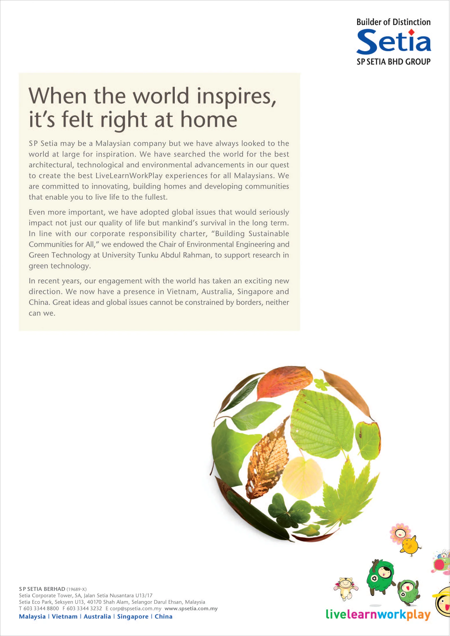 Two years later, we were able to work closely with SP Setia Corporate Communications to position the organisation as an eco and sustainable developer.