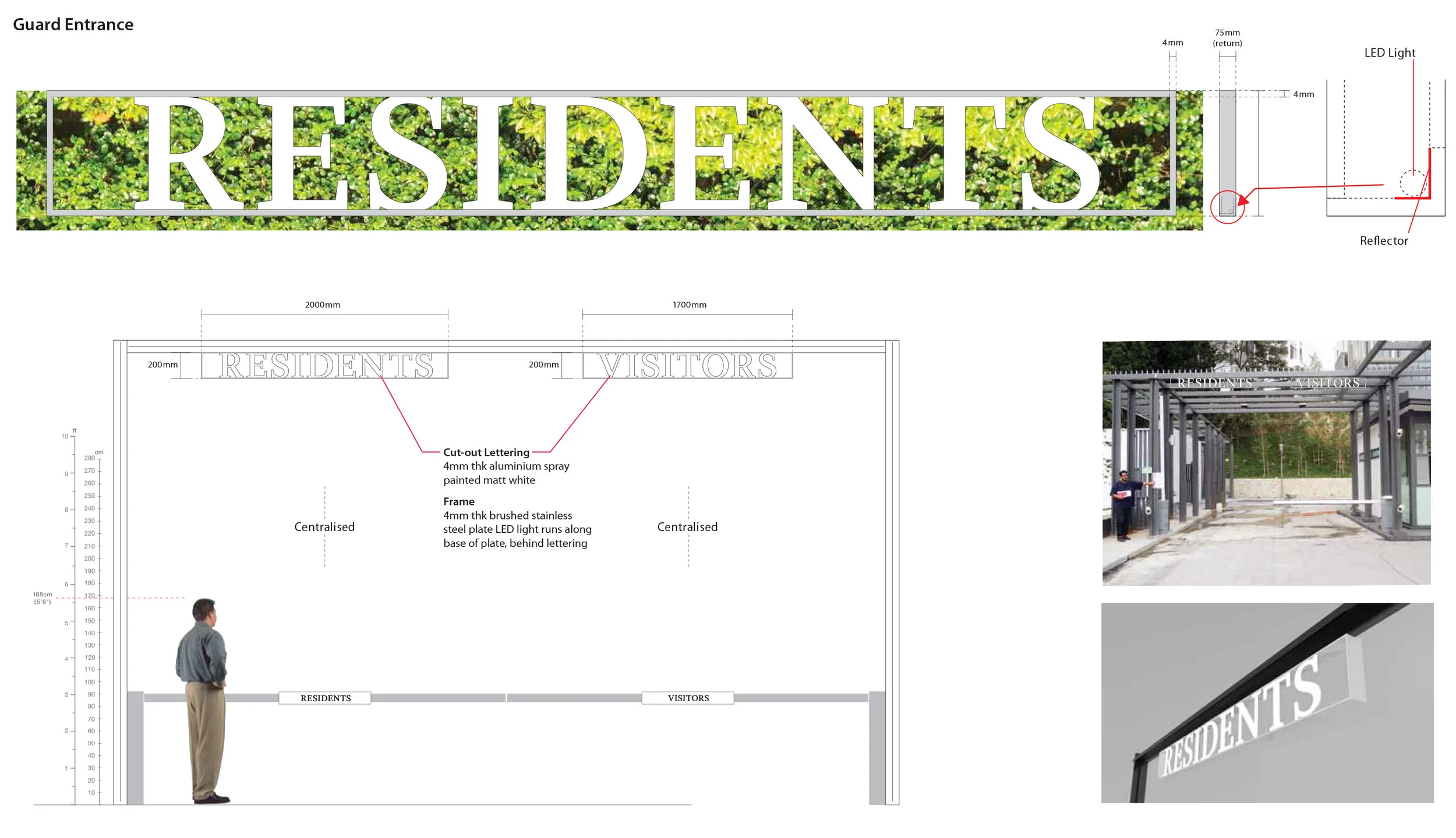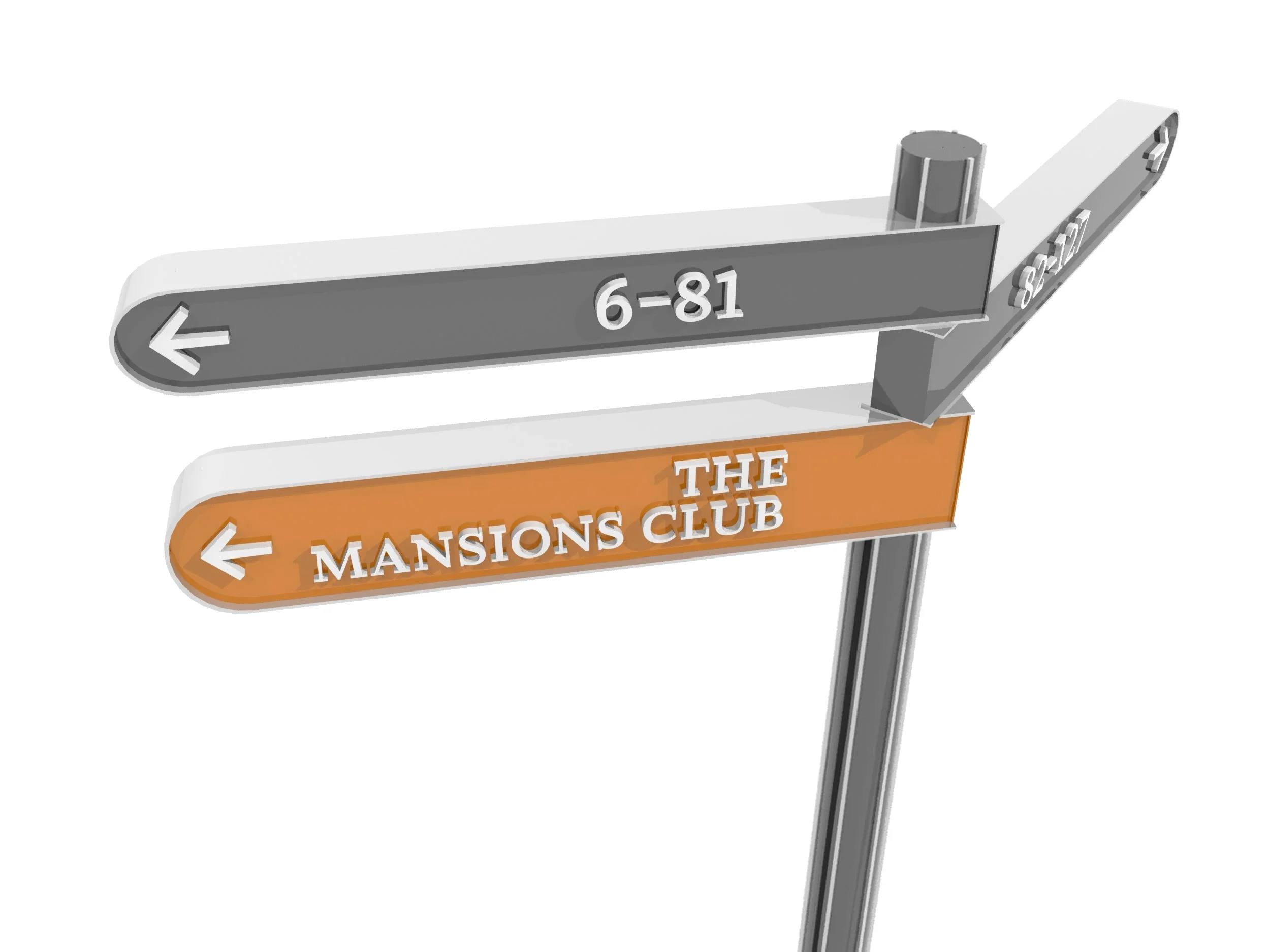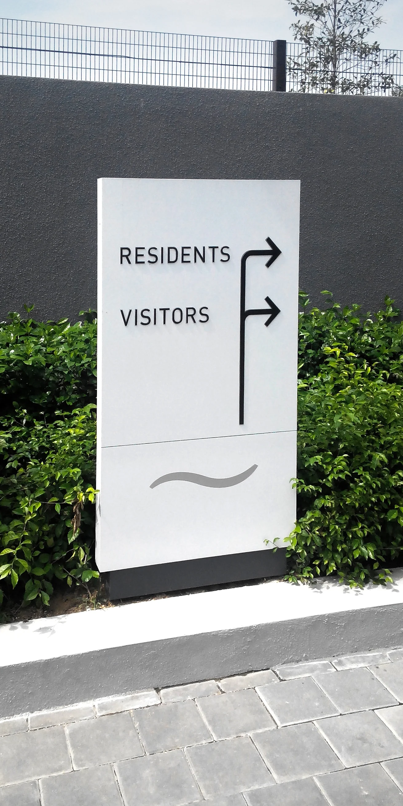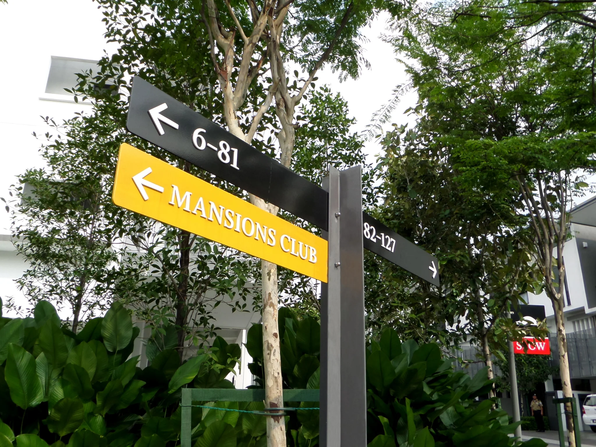 The Mansions is the most premium of the three properties. Internal road signs were specially designed to add to the exclusivity of the place. The simple design and typography provided navigational clarity for users.