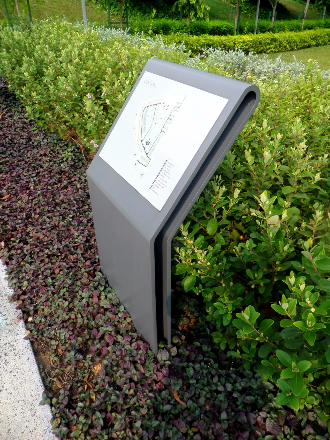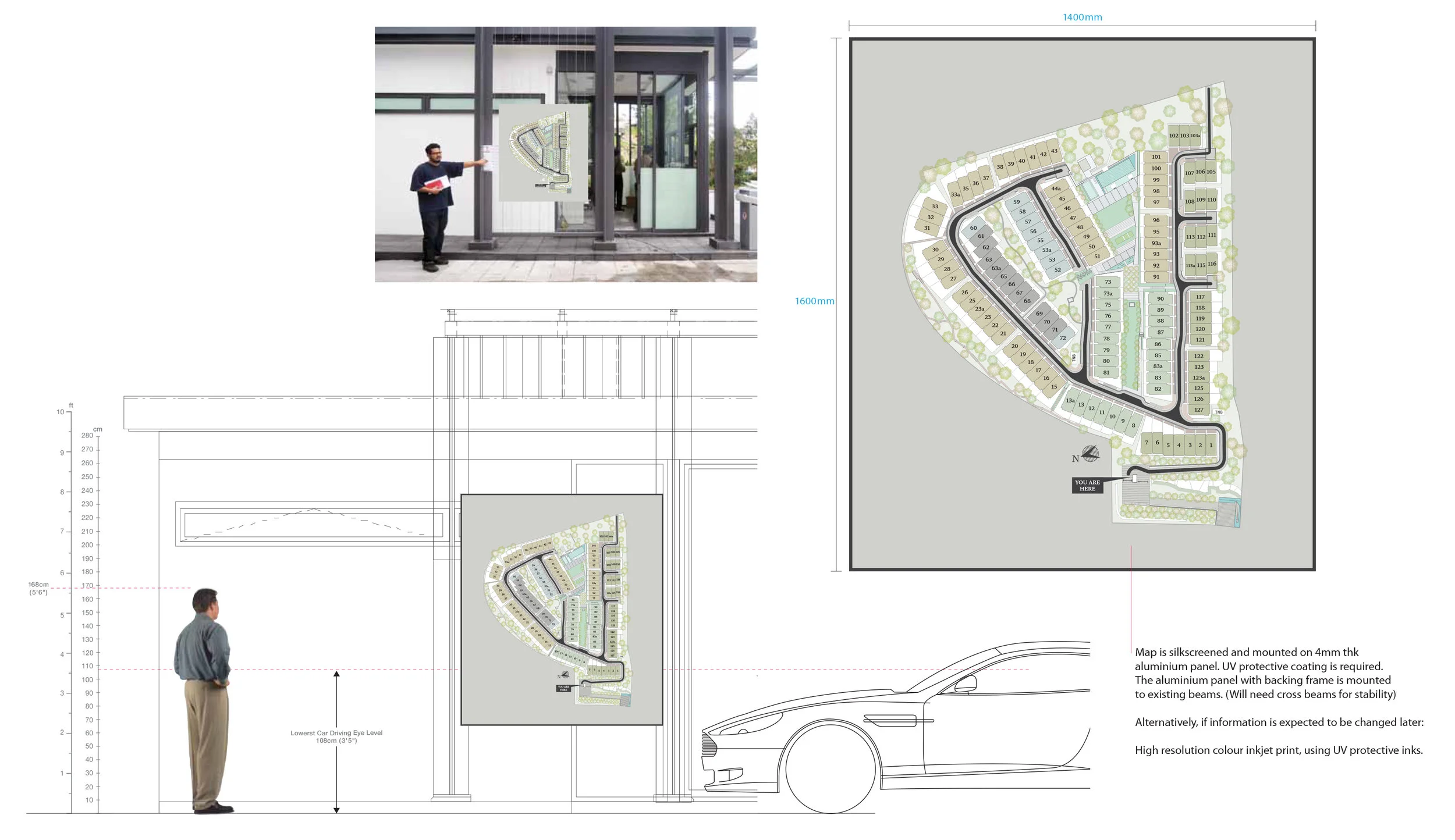 A standard layout for the Playground sign was redesigned (top centre) to keep in character with the premium status of the development. We made the pole-mounted Playground sign slim and small so as not to obstruct the view. The Gymnasium sign is wall-mounted next to the gym’s entrance.