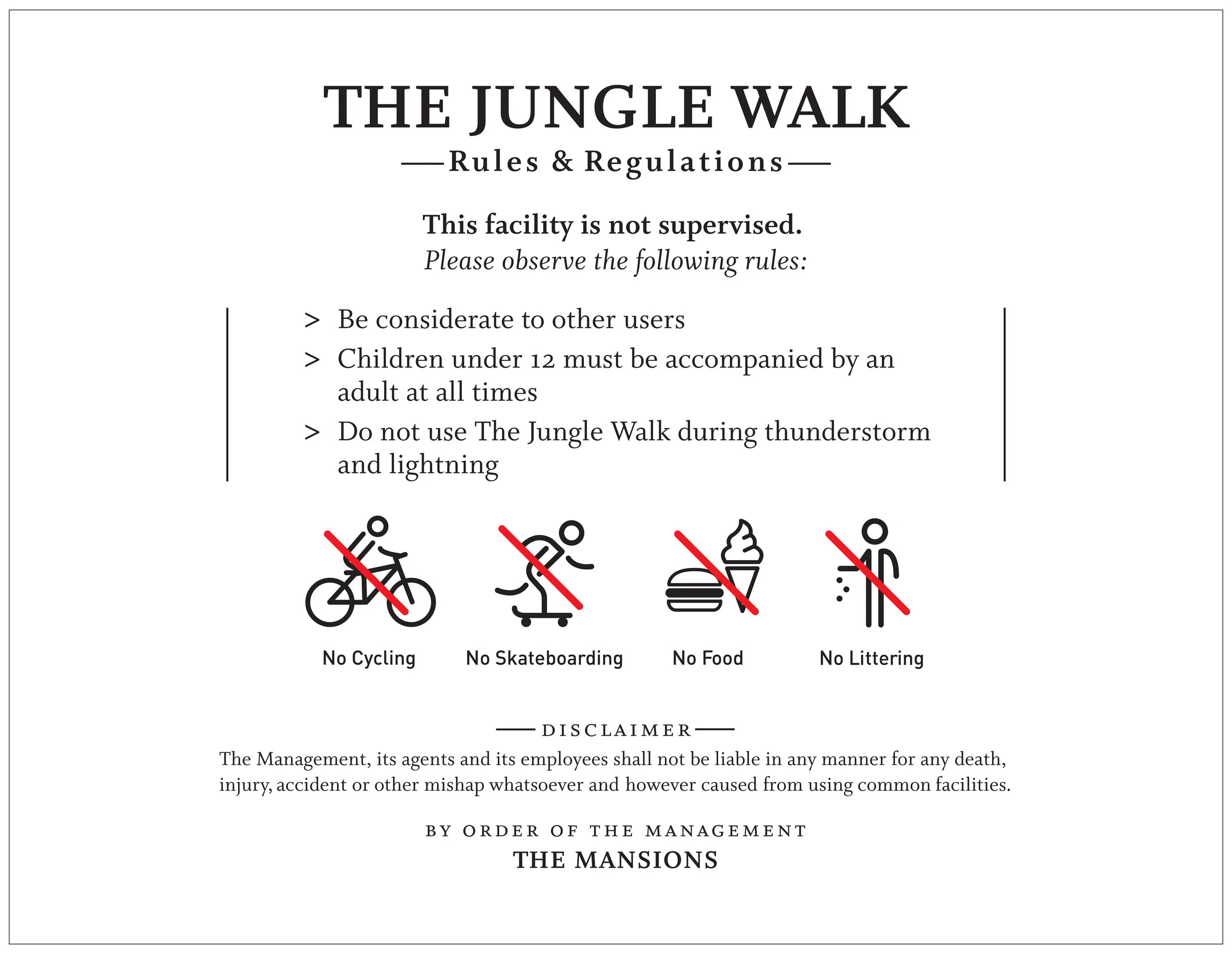 It’s unfortunate that very little attention has been given to typography in cautionary and regulatory signs in most developments. Good typography is essential to ensure clarity and readability, as well as to enhance the character of the development.